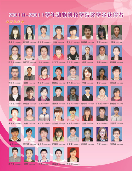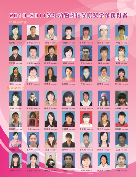 动物科技学院2010-2011学年奖学金获得者风采展示