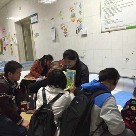 很快到了安医附院,又碰到了合肥市“快乐童年阅读坊”的负责人,简短的聊了一些活动内容,得知我们这个活动是可以开合肥市志愿者的证明的,我们两三个人一组一起给小朋友们讲故事,顺便跟家长们聊聊天,然后我们带小朋友们到活动室给他们放电影,放动画片,孩子们和家长们也都很高兴,很快两个小时就过去了,我们就恋恋不舍的结束了活动,和小朋友们说再见。(动物科技学院志愿者团队 时亚飞)